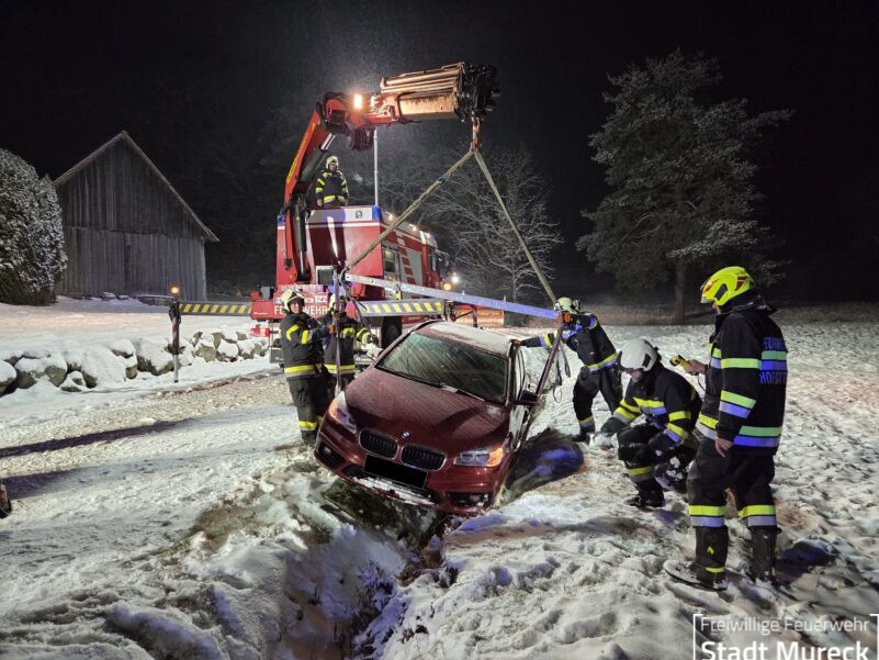 Am Abend des 5. Jänner 2026 wurde die Feuerwehr Mureck mit dem Schweren Rüstfahrzeug (Stützpunktfahrzeug für den Feuerwehrbereich Radkersburg) von der einsatzleitenden Feuerwehr Hofstätten zur Unterstützung bei einer Fahrzeugbergung gerufen. …