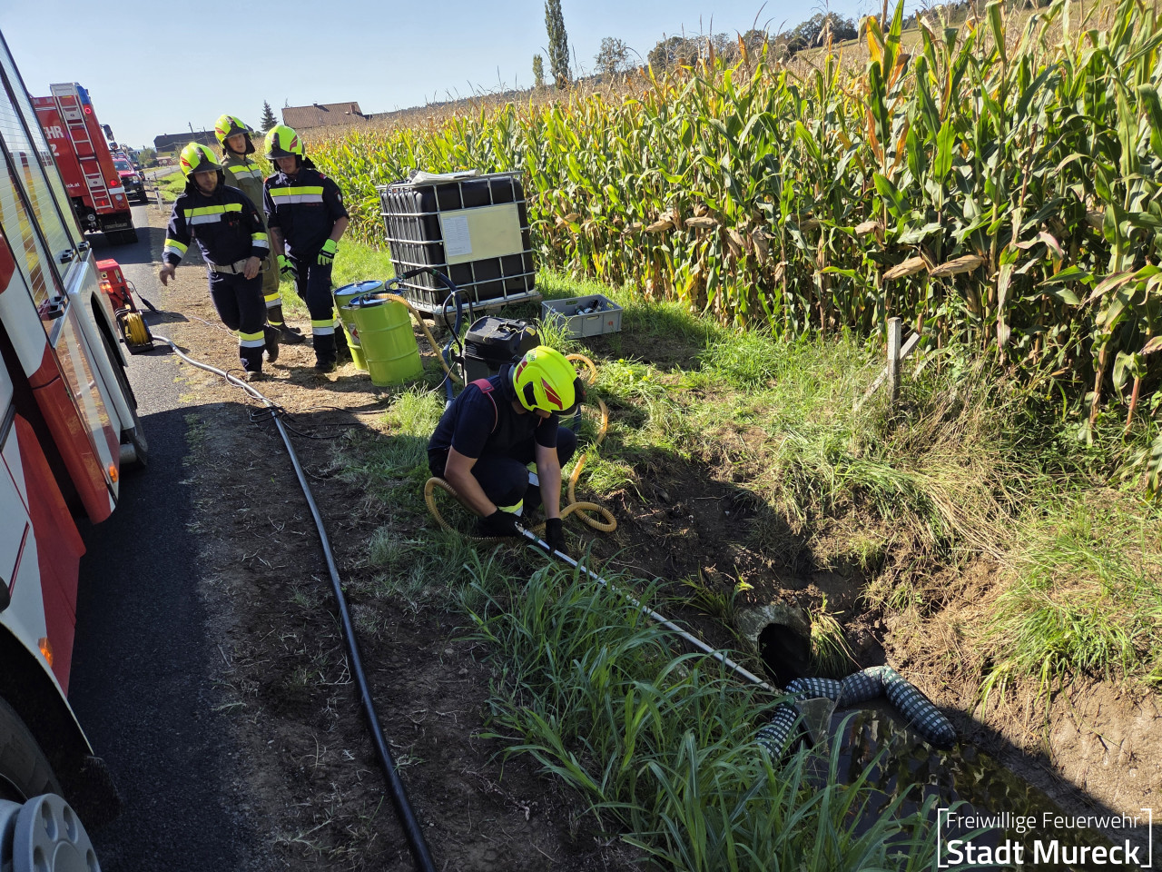 Vom Einsatzleiter wurden die Stützpunktfeuerwehren Mureck (Schweres Rüstfahrzeug) und Ratschendorf (Ölschadensfahrzeug) zur Unterstützung nachalarmiert.