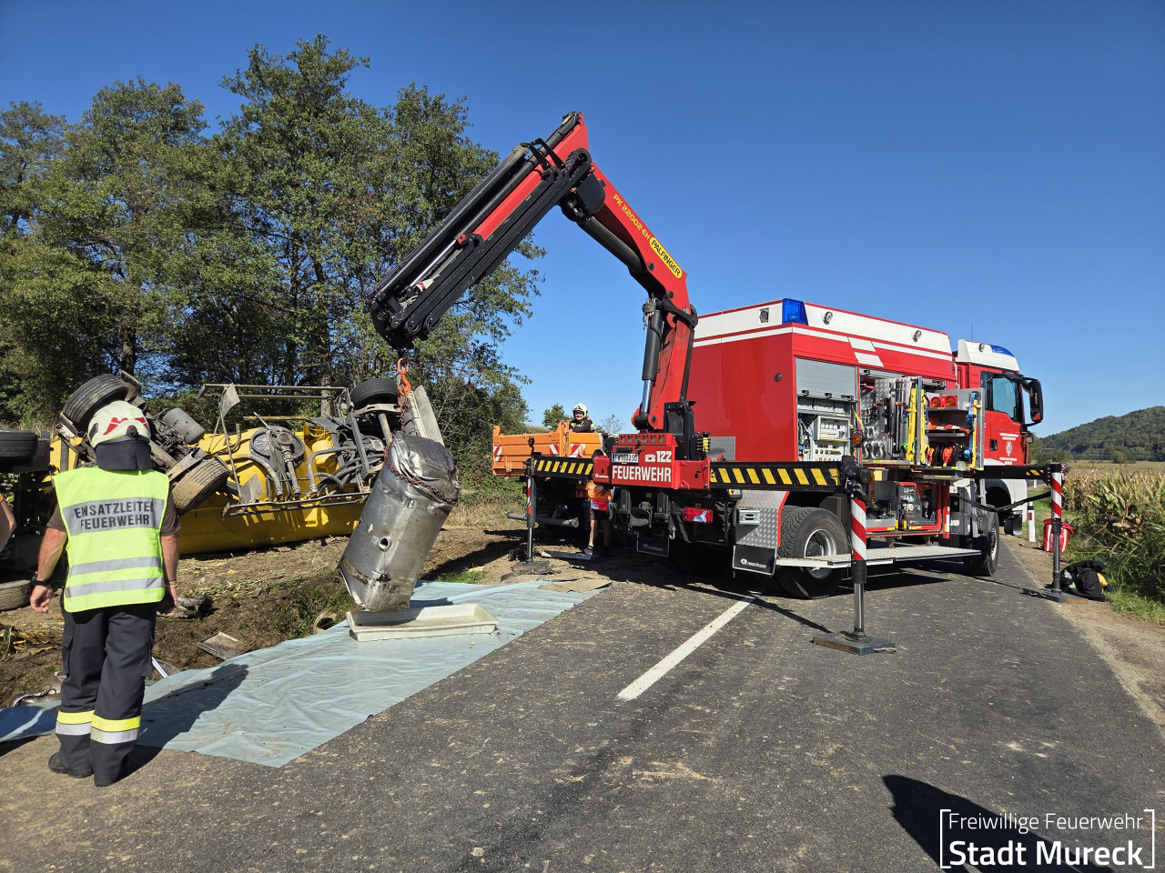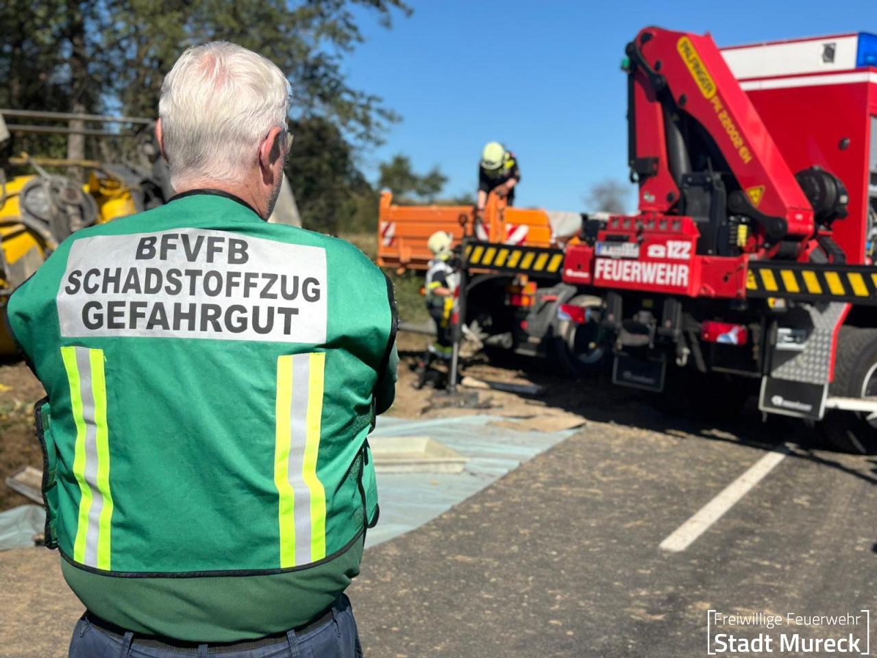 Weitere Kräfte: Bereichsfeuerwehrkdt.-Stv., FF Entschendorf, FF Perbersdorf bei St. Peter a.O., FF Ratschendorf, FF Wittmannsdorf, Polizei, Regionalkdt. Schadstoffzug Südost, Rettung, Straßenerhaltungsdienst