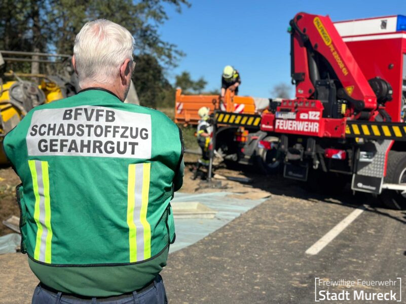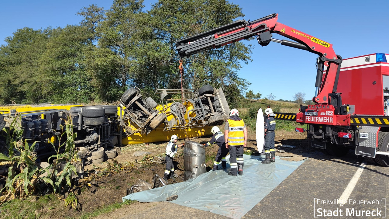 In weiterer Folge wurde von den Feuerwehren Ratschendorf und Wittmannsdorf mit Unterstützung des Straßenerhaltungsdienstes und von Fachfirmen ein zeit- u. materialaufwendiger Schadstoff- und Bergeeinsatz abgearbeitet.