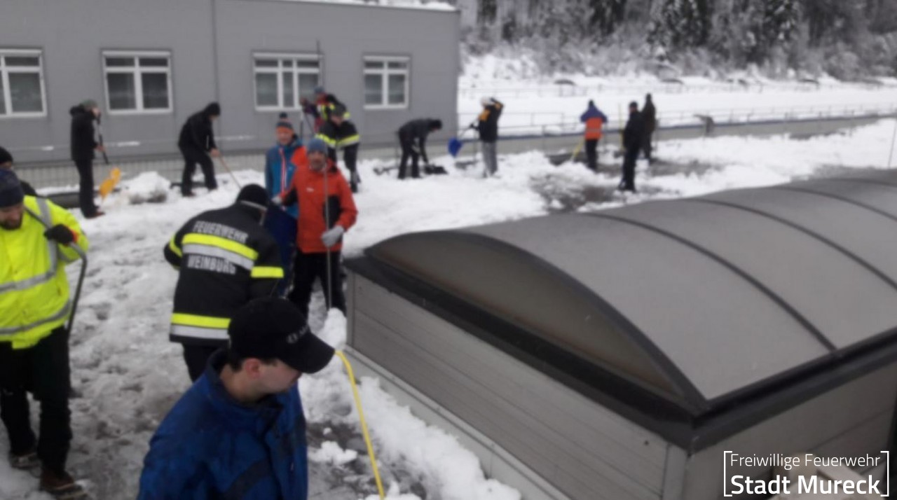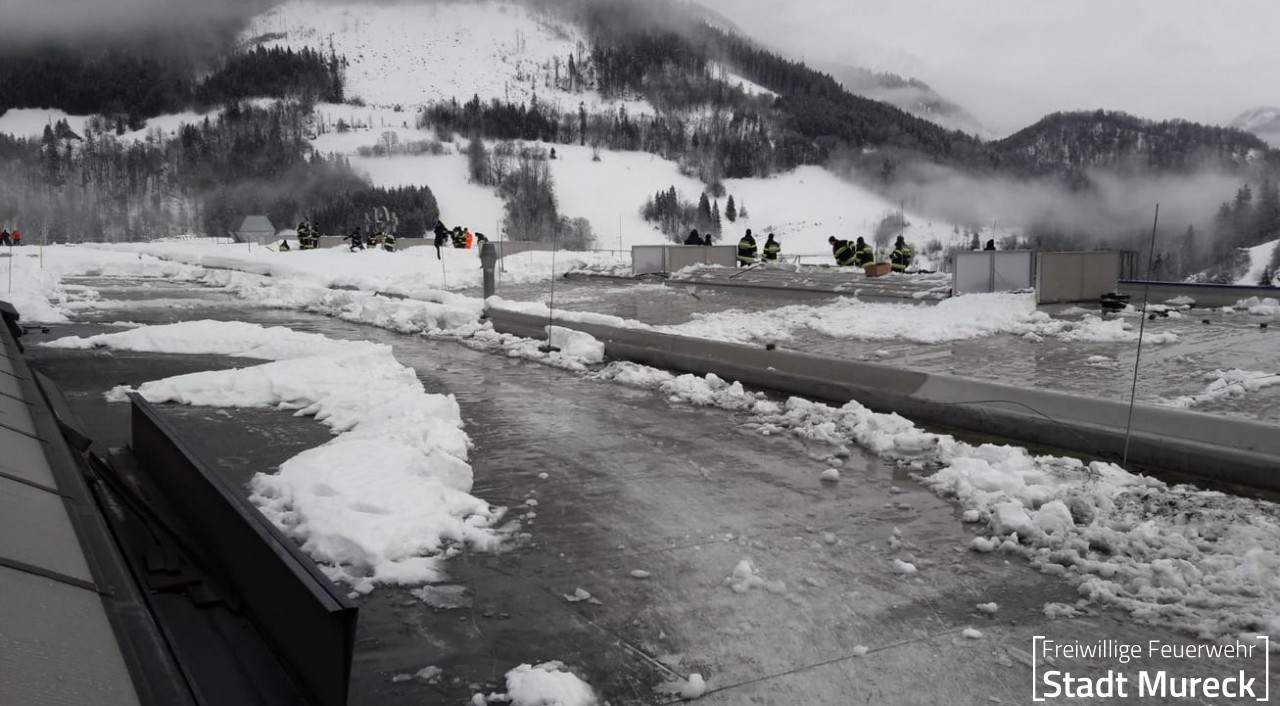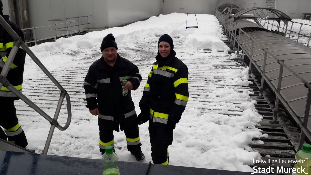 Im Gesamten waren an diesem Einsatzort 194 Mann aus dem Bereich Radkersburg, dem Raum Schladming und eben Mitarbeiter der Firma im Einsatz. Gemeinsam konnten rund 10.000 m² Dachfläche von der Schneelast befreit werden.