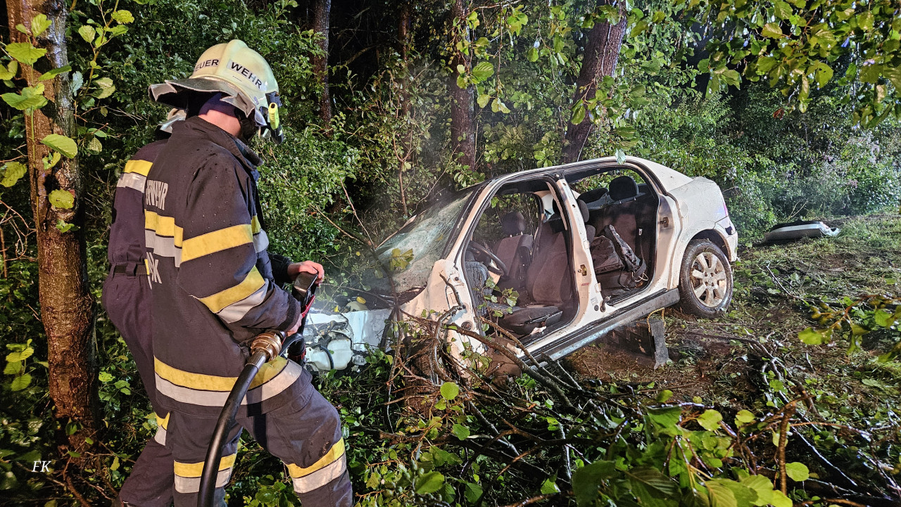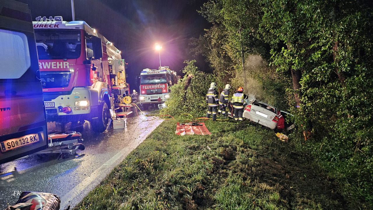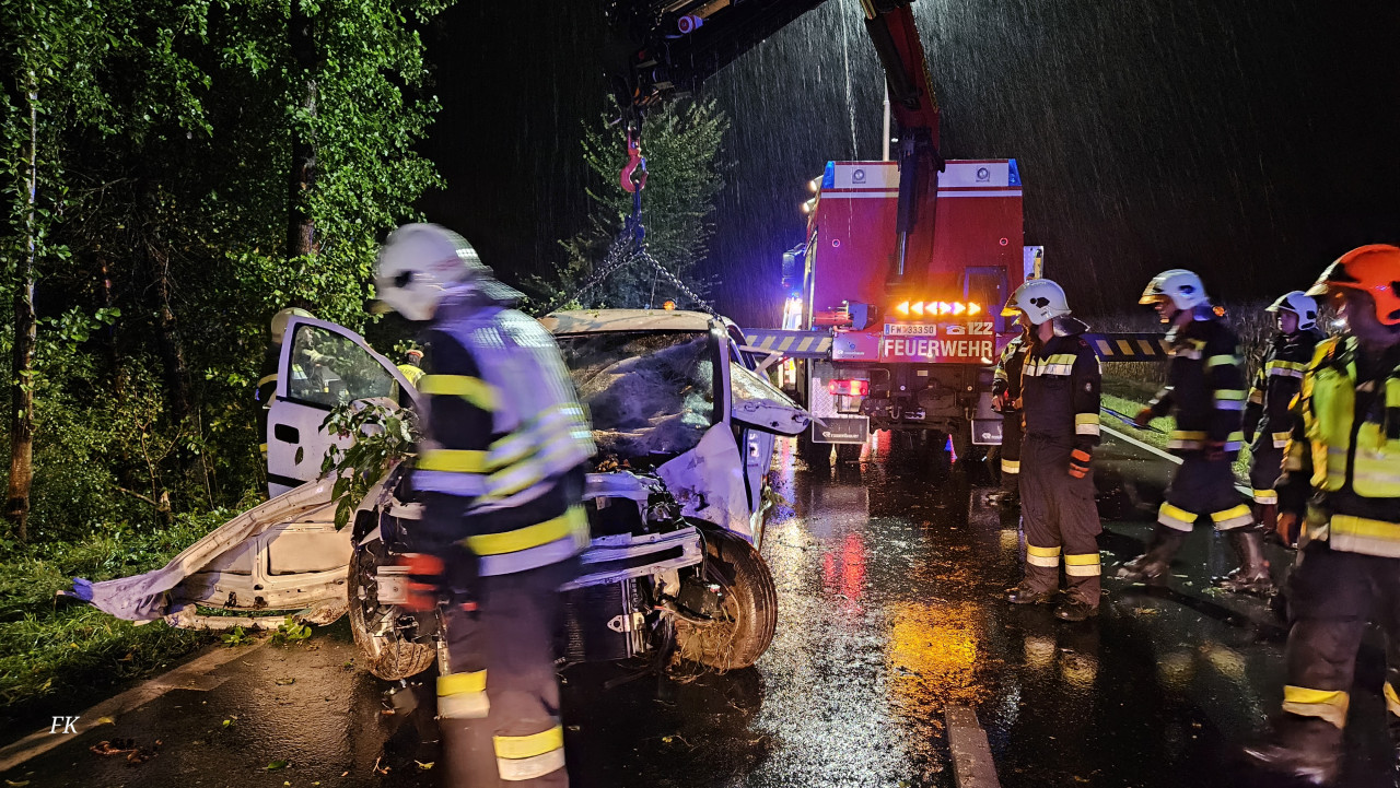 Weiters wurde von der Feuerwehr ein 2-facher Brandschutz aufgebaut. Am Fahrzeug entstand Totalschaden. Nach Freigabe der Unfallstelle durch die Polizei wurde der PKW mittels Kran des Schweren Rüstfahrzeuges geborgen und auf einen nahegelegenen Abstellplatz gebracht.