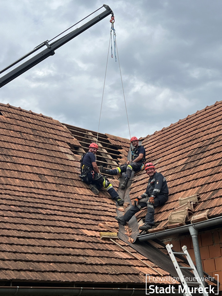Es befinden sich die Feuerwehren Gosdorf, Mureck (SRF mit Korb), Hof bei Straden (Teleskoplader) und Bierbaum am Auersbach (MRAS-Trupp) im Einsatz.