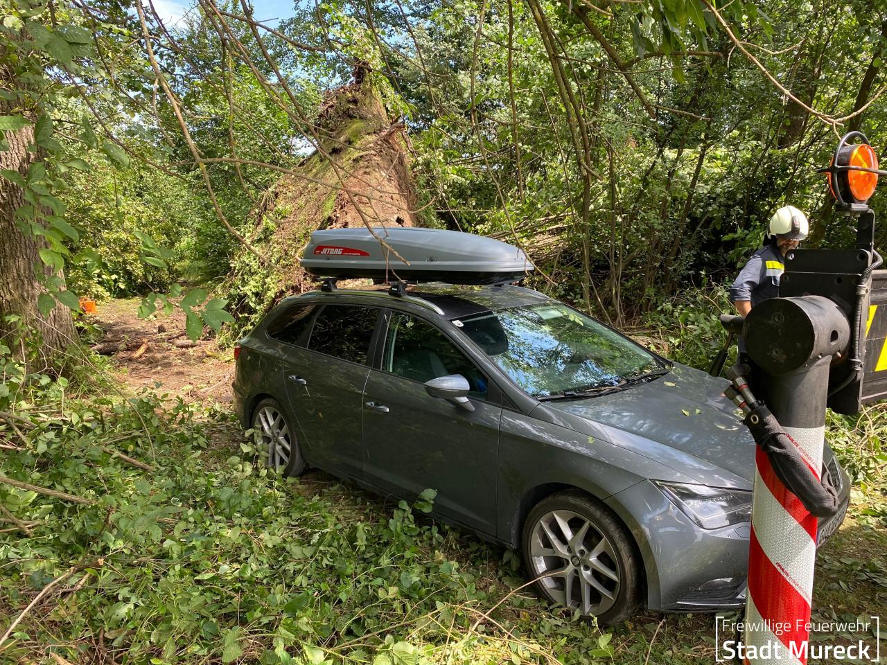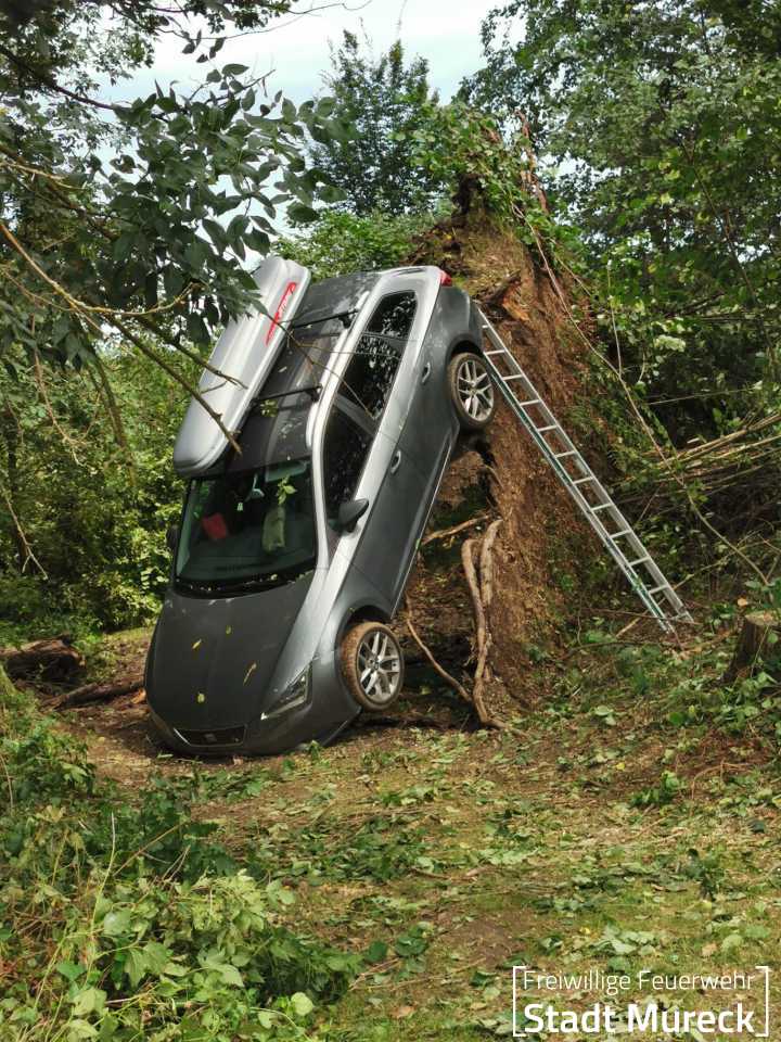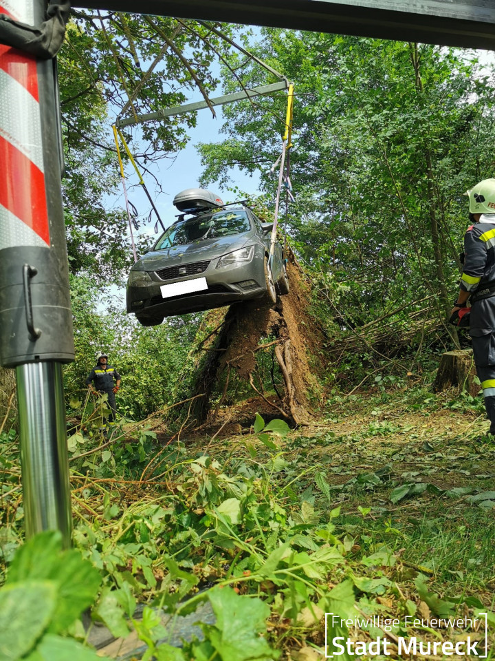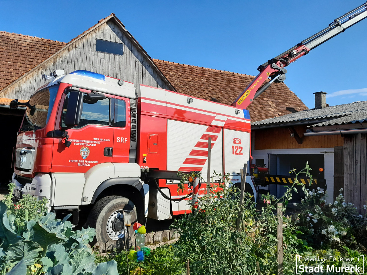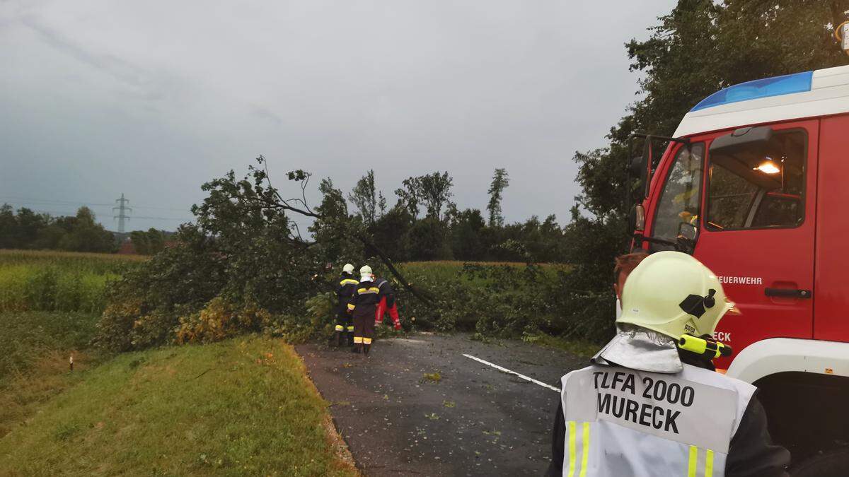 ab 08:00 werden die Aufräumarbeiten fortgesetzt, die Feuerwehr Mureck steht mit dem SRF und LKWA mit Korbanhänger und 10 Mann, gemeinsam mit weiteren Feuerwehren aus dem Feuerwehrbereich Radkersburg im Einsatz.