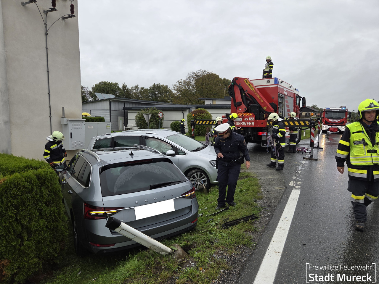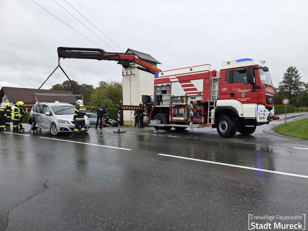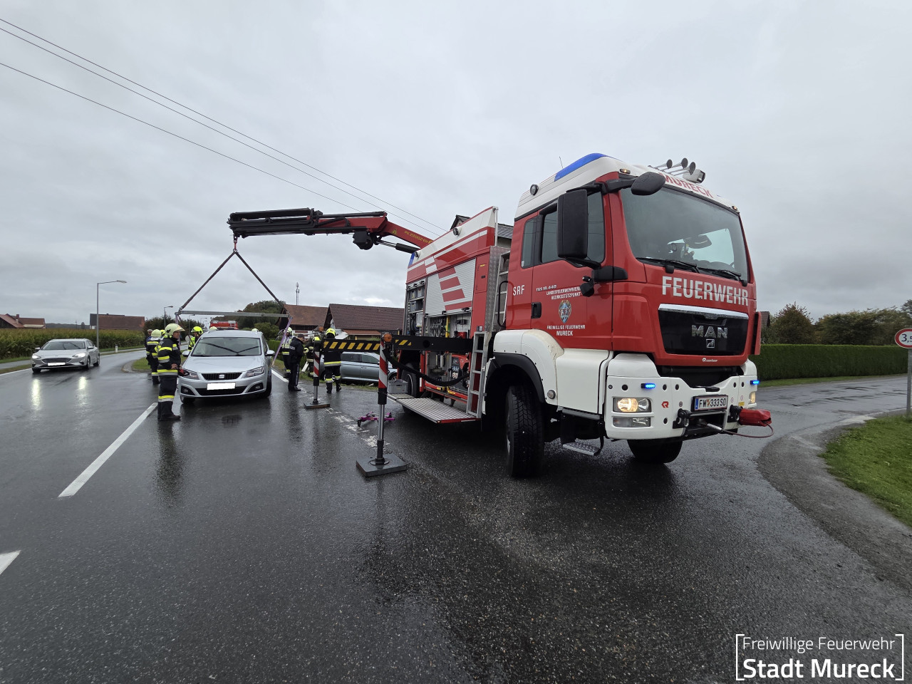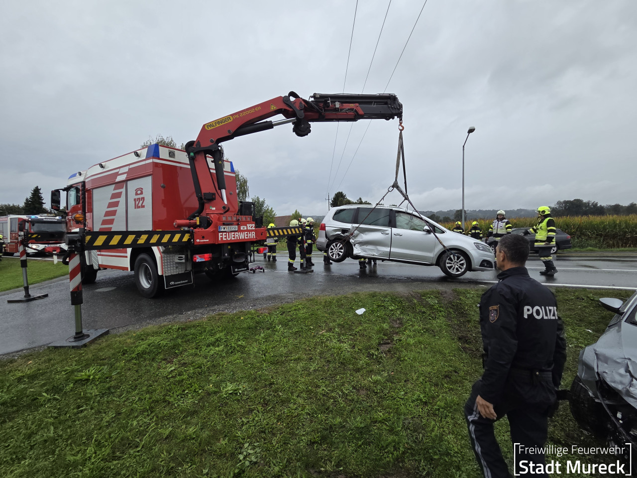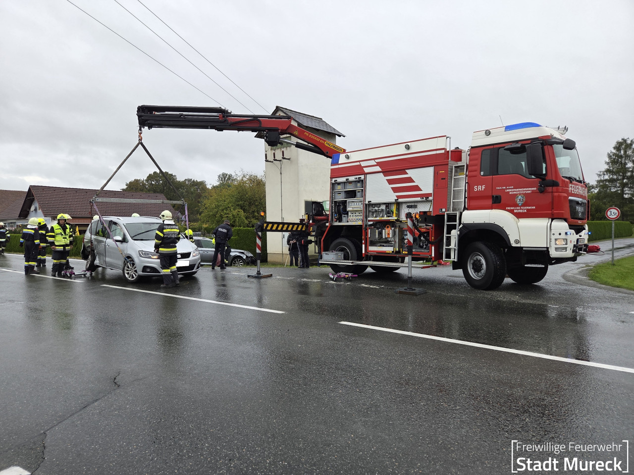 Für die Bergung der beiden beschädigten PKW wurde die Feuerwehr Mureck mit dem Schweren Rüstfahrzeug (Stützpunktfahrzeug für den Feuerwehrbereich Radkersburg) nachalarmiert.