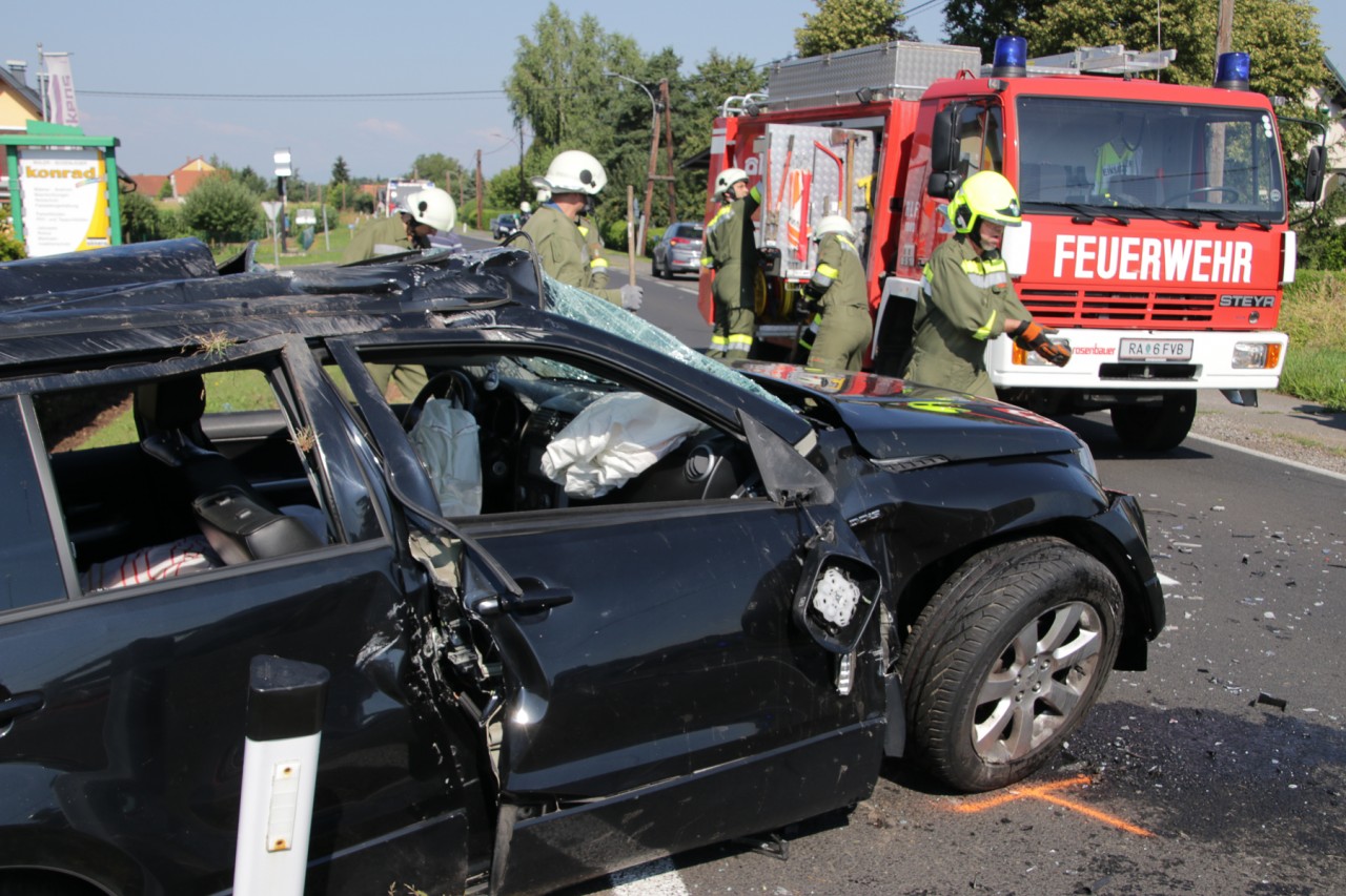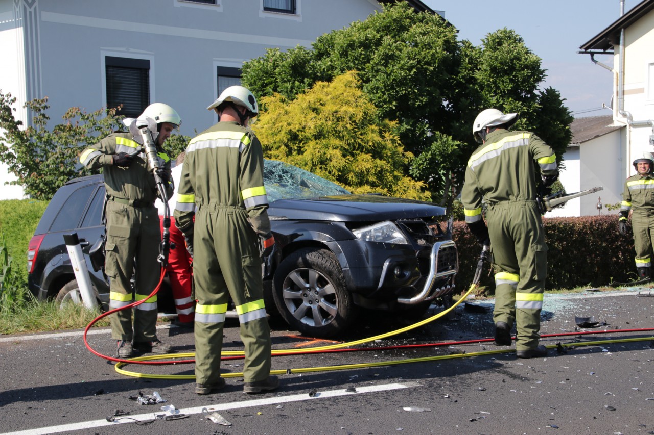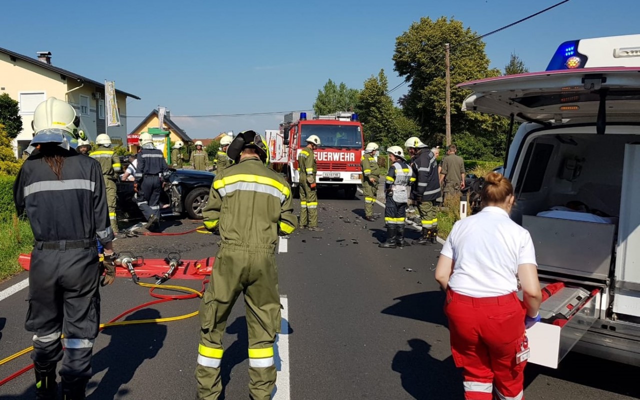 Auf Höhe der Firma Maler Konrad in Weitersfeld kam es heute zu einem Frontalzusammenstoß zweier PKW. Eine Person musste mit hydraulischem Rettungsgerät der FF Weitersfeld a.d. Mur aus einem der Unfallfahrzeuge gerettet werden. Die Verletzten wurden erstversorgt und vom Notarzt, Rettung und Hubschrauber in Krankenhäuser abtransportiert.