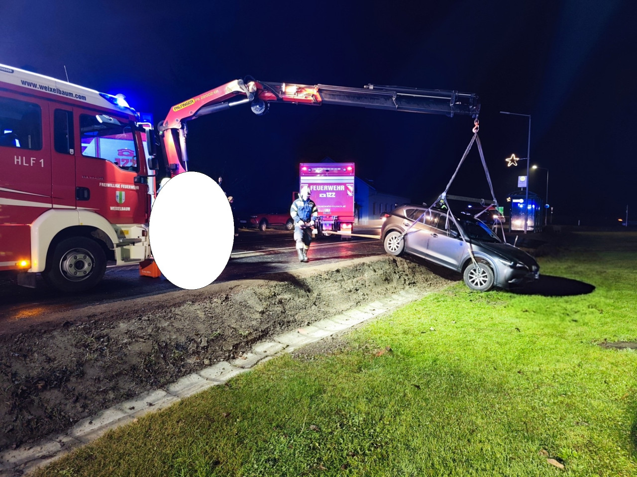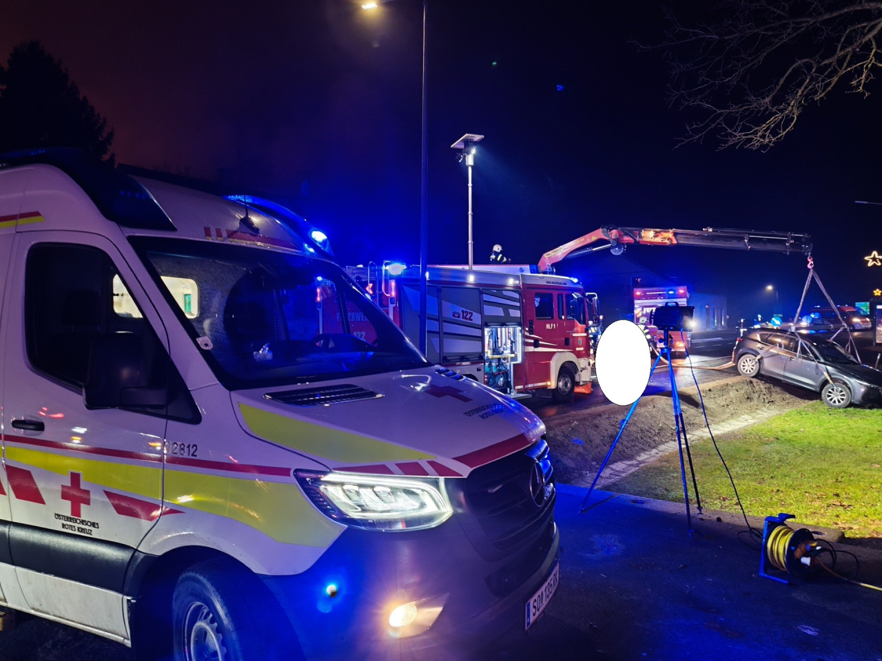 Zu einer Fahrzeugbergung, nur wenige Meter vor dem Feuerwehrhaus, wurde am Abend des 15. Dezember 2025 die Feuerwehr Weixelbaum gerufen. Aus vorerst unbekannter Ursache kam eine Fahrzeuglenkerin von der Fahrbahn der B69 ab und landete im Straßengraben. Sie wurde von den Feuerwehrkameraden erstversorgt und vom Einsatzleiter der Rettungsdienst verständigt, von dem sie anschließend ins LKH Wagna gebracht wurde. Parallel dazu wurden Beleuchtung, Brandschutz und eine örtliche Umleitung eingerichtet. Um eine schonende Bergung durchzuführen, wurde die Feuerwehr Mureck mit dem Schweren Rüstfahrzeug (Stützpunktfahrzeug für den Feuerwehrbereich Radkersburg) nachalarmiert. Nach den Aufräumarbeiten wurde der Verkehr wieder freigegeben und das Fahrzeug gesichert abgestellt.