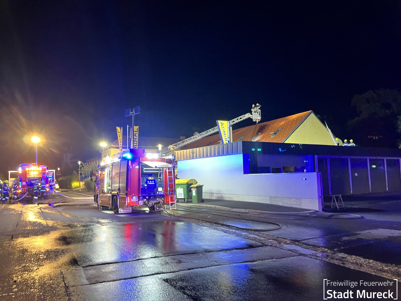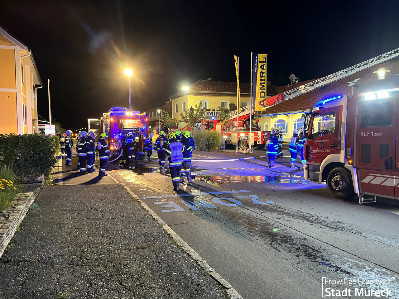 Am 08.08.2023 um 00:31 Uhr wurden die Feuerwehren Mureck, Eichfeld u. Misselsdorf sowie die Stadtfeuerwehr Bad Radkersburg mit der Drehleiter zu einem Wohnhausbrand in die Bahnhofstraße in Mureck gerufen.