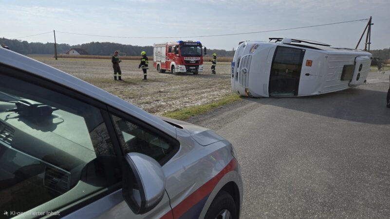 Bergung eines Klein-LKW-Transporters aus dem Straßengraben mittels der Seilwinden des Schweren Rüstfahrzeuges der FF Mureck und des Hilfeleistungsfahrzeuges der FF Weixelbaum. Fotos: HBI d. V. Josef Baumgartner / Presseteam BFV …