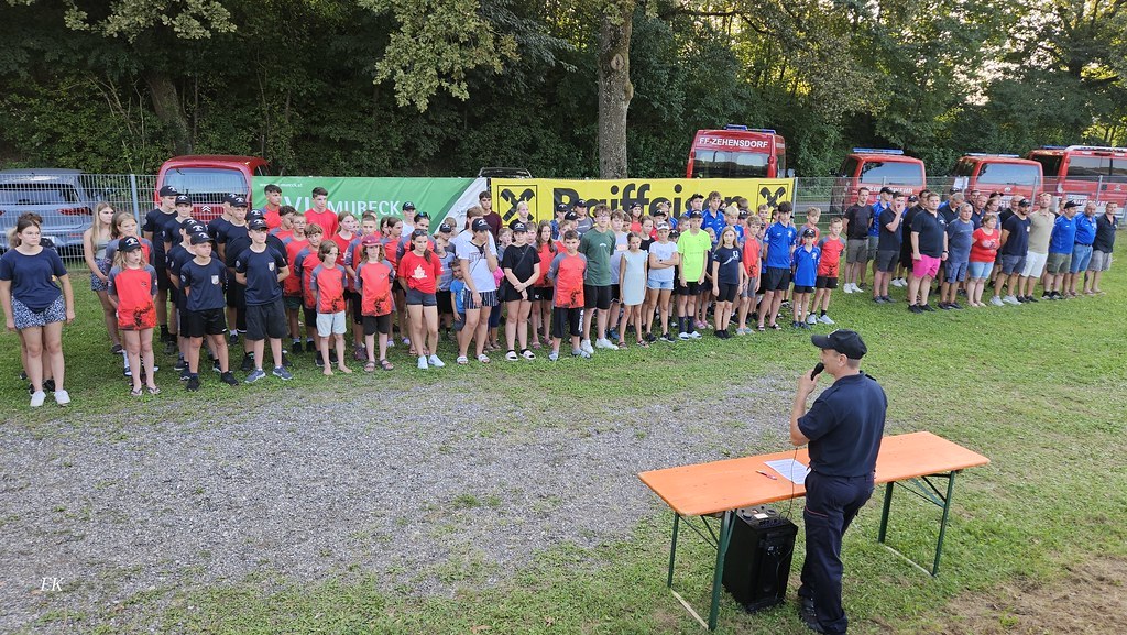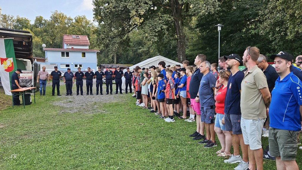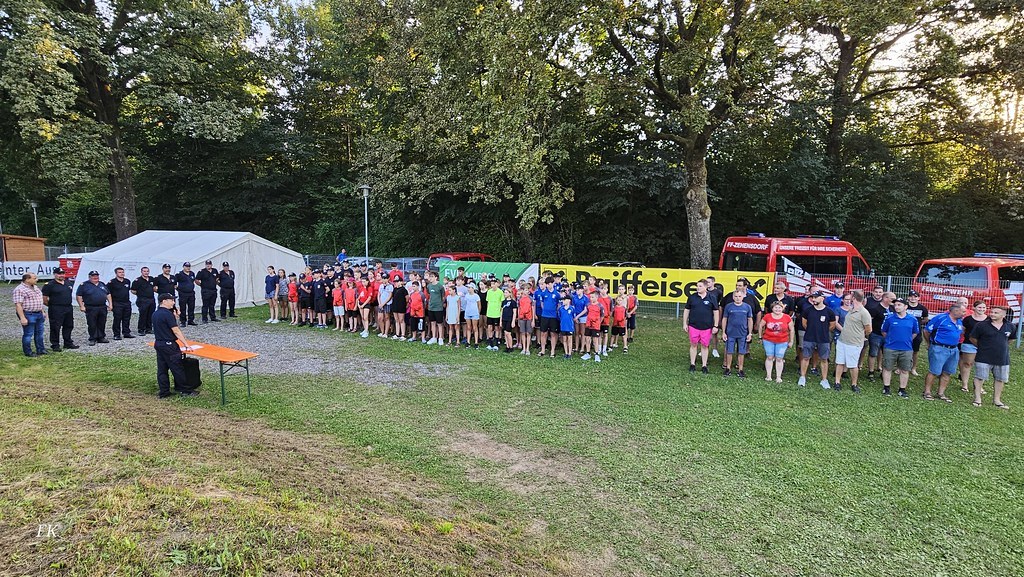 OBR Volker Hanny konnte um 19 Uhr das Zeltlager als eröffnet erklären. Die Feuerwehrjugend sind die „Helden von Morgen“.