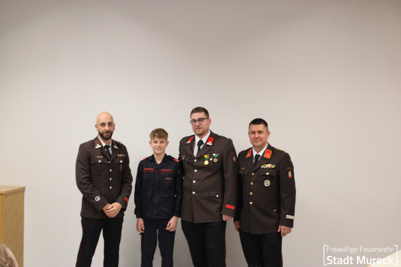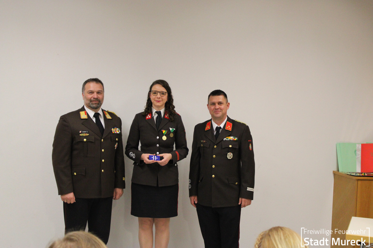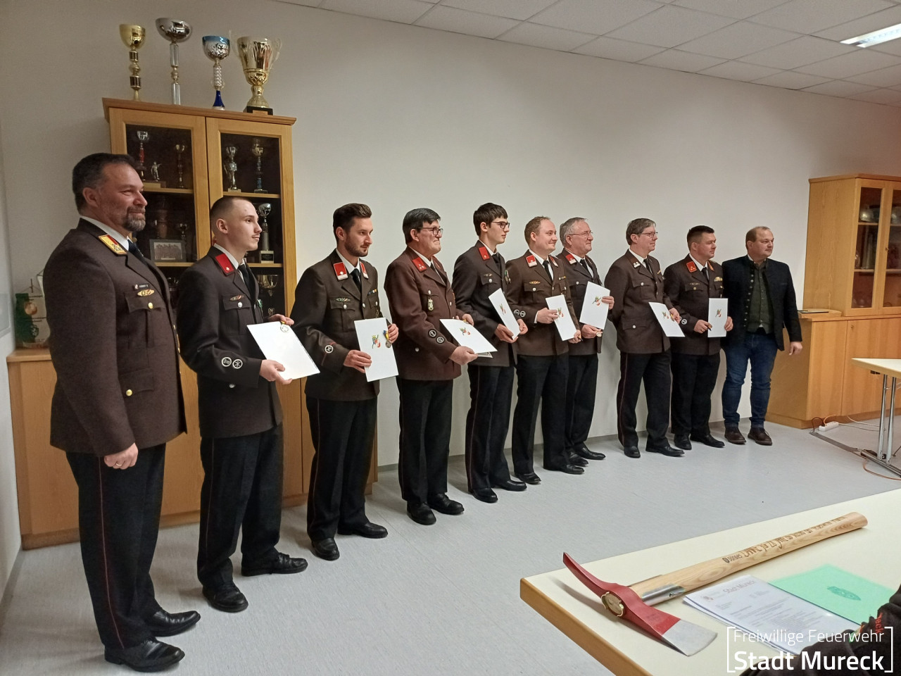 Im Rahmen der Wehrversammlung wurden von Bgm. Klaus Strein Auszeichnungen des Landes Steiermark und von OBR Volker Hanny Auszeichnungen der Landesfeuerwehrverbände Steiermark und Niederösterreich an langjährige und verdiente Mitglieder der FF Mureck überreicht: