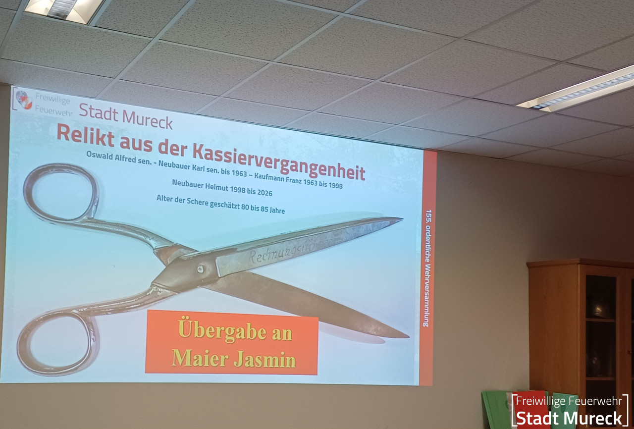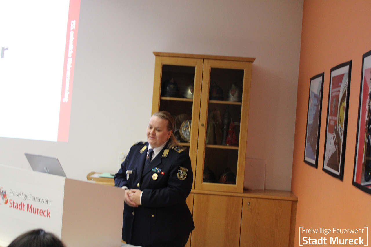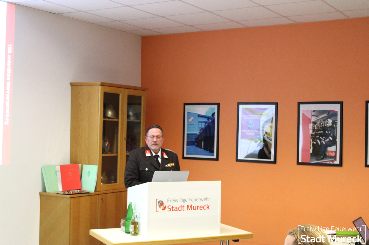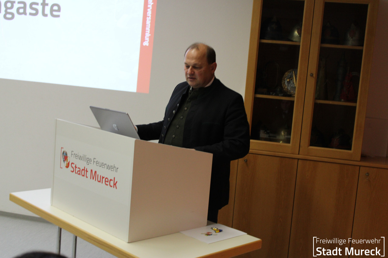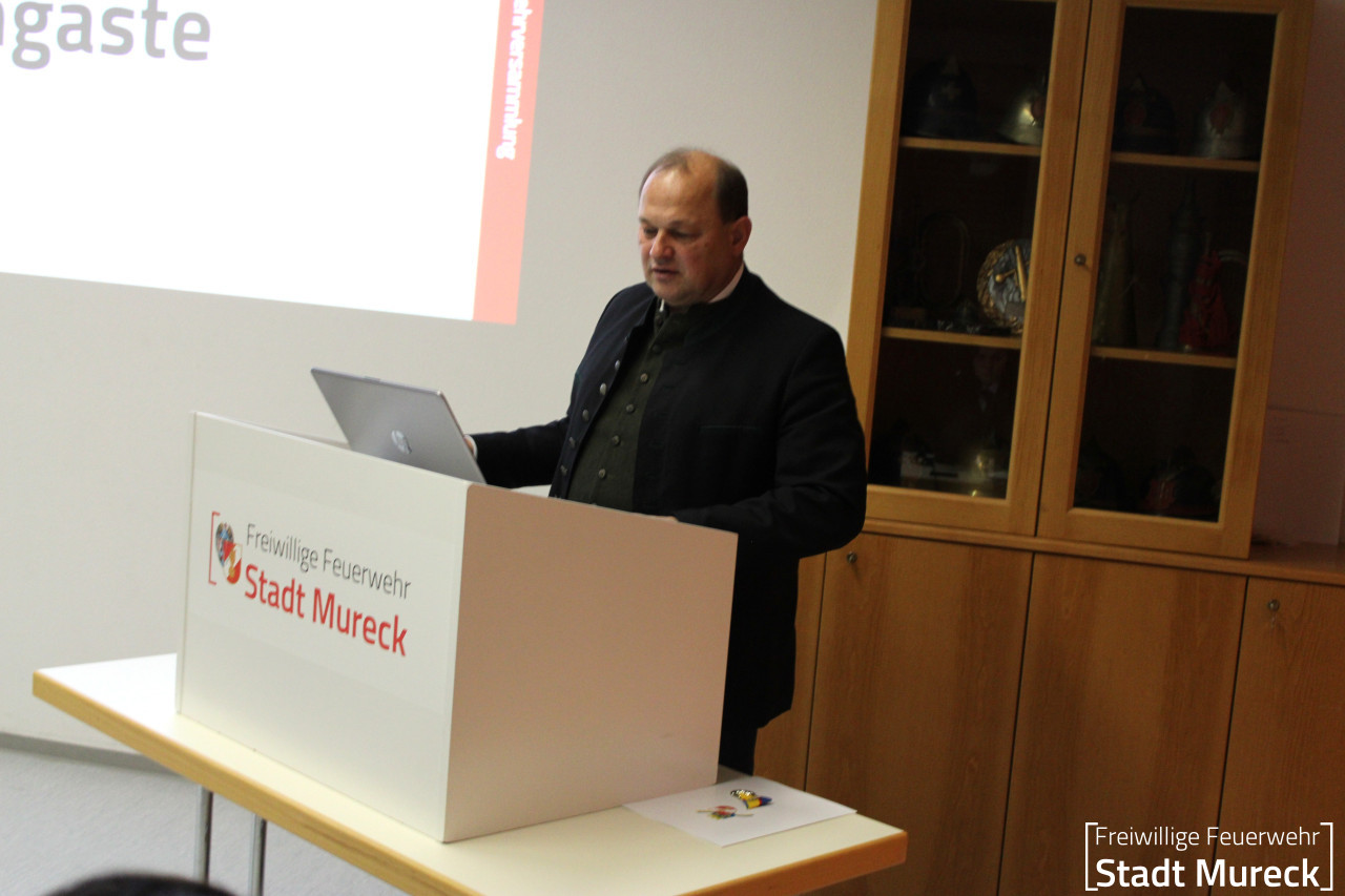 Zur 155. Ordentlichen Wehrversammlung am 10. Jänner 2026 konnte Feuerwehrkommandant HBI Alexander Amschl im Schulungsraum des Feuerwehrhauses 39 stimmberechtigte Mitglieder, 11 Angehörige der Feuerwehrjugend, sowie als Ehrengäste den Bürgermeister der Stadtgemeinde Mureck Klaus Strein, Bereichsfeuerwehrkommandant OBR Volker Hanny, den zuständigen Abschnittsfeuerwehrkommandanten ABI Gottfried Haas und von der PGD Paloma Sladki Vrh (SLO) Präsidentin Valentina Oslovnik.