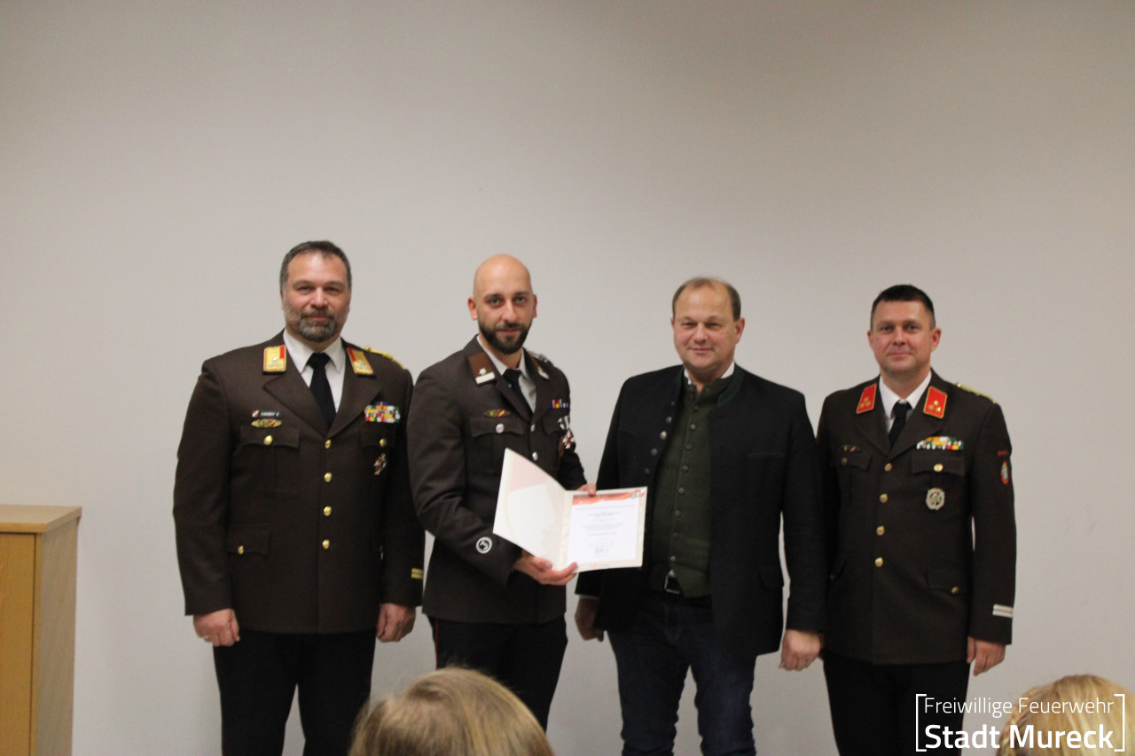 Abschließend dankten sie allen Mitgliedern der Freiwilligen Feuerwehr Mureck für ihren Einsatz und alle Tätigkeiten als Stützpunktfeuerwehr zum Schutz und zur Sicherheit der Bevölkerung.