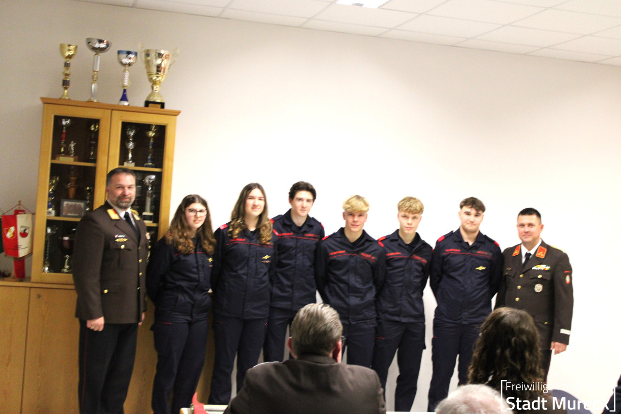 PFM Leo Faulent, PFM Lukas Faulent, PFM John-Otto Stürzer, PFM Alexander Gries, PFF Leonie Wolf und PFF Jasmine Gabeljic haben die Grundausbildung erfolgreich abgeschlossen. Sie wurden in den Aktivstand übernommen und zu Feuerwehrmänner bzw. -frauen befördert.