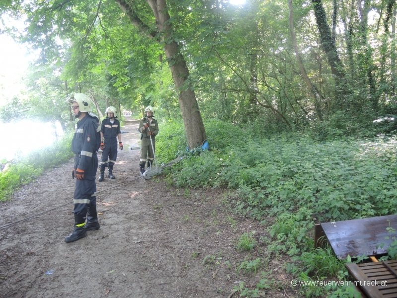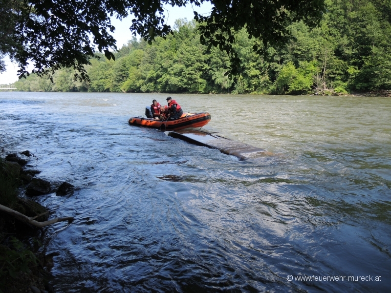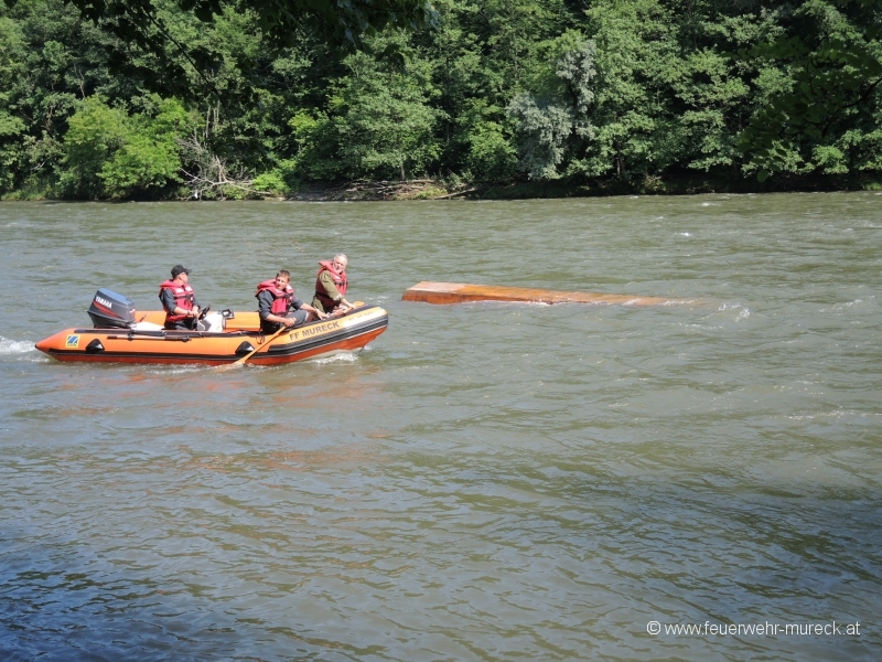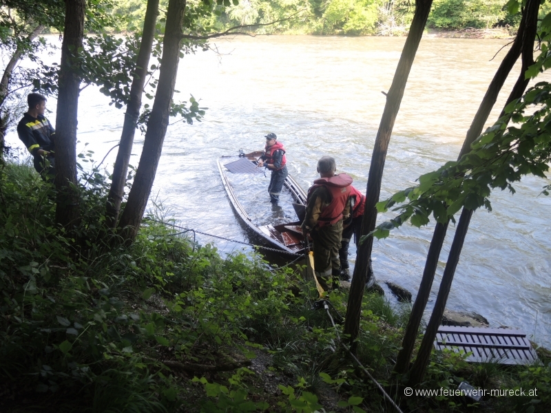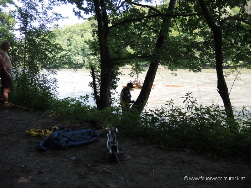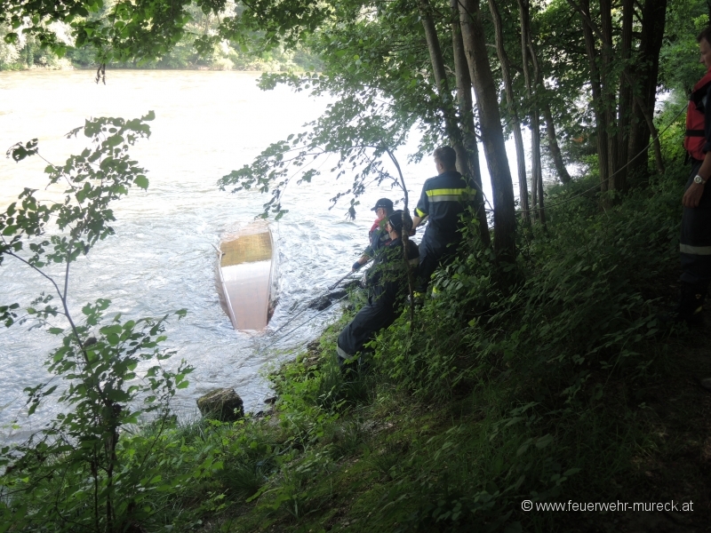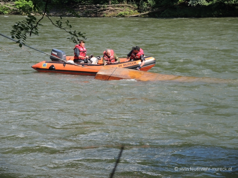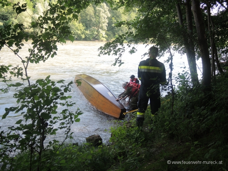 Glück im Unglück hatten zwei Bootsführer, die mit einem Holzboot auf der Mur kenterten.