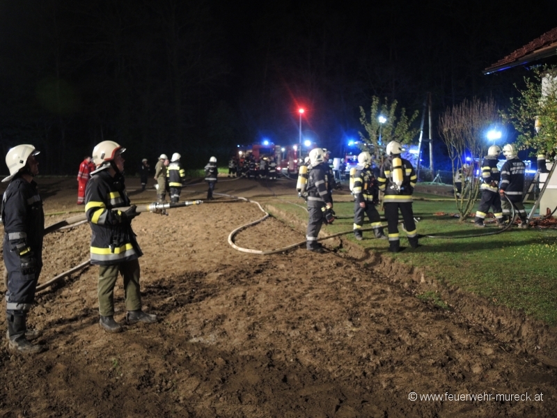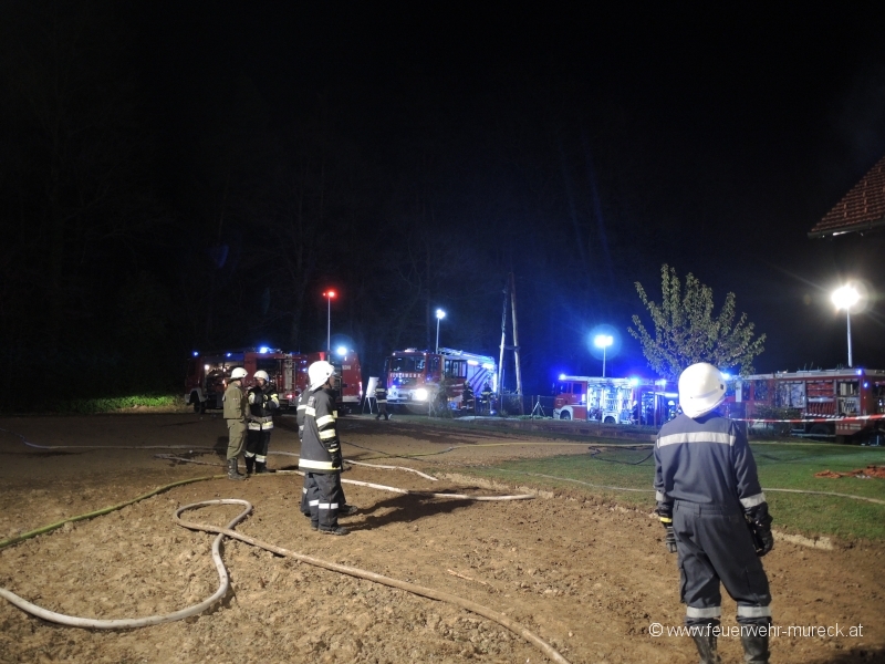 Insgesamt waren bei diesem Einsatz 11 Feuerwehren mit 20 Fahrzeugen und 110 Einsatzkräften, sowie die Polizei und das Rote Kreuz beteiligt.
