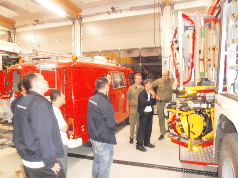 HBI Paul Maier und HLM Johannes Maier führten die Gäste durch das Feuerwehrhaus. Sehr interessiert zeigten sie sich an unseren Fahrzeugen, besonders dem SRF und TLF-A 2000. Für beide Seiten war es ein Kennenlernen einer jeweils ganz anderen Welt, gemeinsam verbindet uns jedoch der Dienst am Nächsten, der unsere Hilfe benötigt.