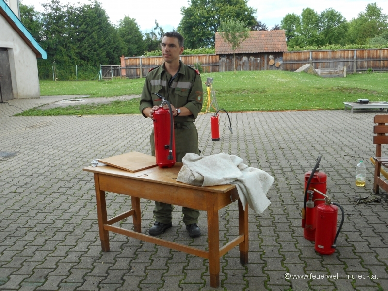 Was tun, wenn es brennt ? Das war Thema einer Schulung mit den Lehrkräften und dem Schulpersonal der Volksschule Mureck. LM Peter Wolf, Vortragender für die Entstehungsbrandbekämpfung in der Feuerwehr Mureck, führte die Handhabung eines Feuerlöschers und einer Löschdecke vor. Anschließend konnte jeder Teilnehmer mit einem Handfeuerlöscher praxisnahe üben. Zum Abschluss wurde noch ein Fettbrand vorgeführt und dessen folgenschwere Auswirkungen, wenn er mit Wasser gelöscht wird. Wir bedanken uns bei Fr. VDir. Hermine Trummer für die Möglichkeit, diese wichtige Schulung durchführen zu können und bei allen Teilnehmern für die aktive Mitarbeit.